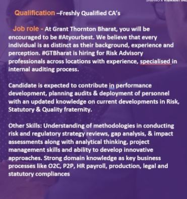 If you’re a freshly qualified CA and looking to kickstart your career in a strong consulting environment, we at Grant Thornton Bharat LLP are hiring for the:
